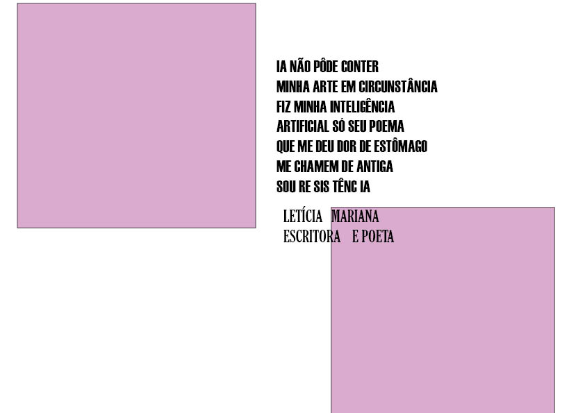 Uma poesia gráfica imagética e experimental relacionada às críticas sobre Inteligência Artificial. ResistêncIA é o cenário da arte como arte, fruto do resistir dos poetas. Resistir, neste caso, não é negar o novo, mas questionar a falta do que é naturalmente essencial aos artistas reais. O simbolismo por trás dessa arte demonstra a verdadeira forma do que um dia foi novo e hoje é velho.